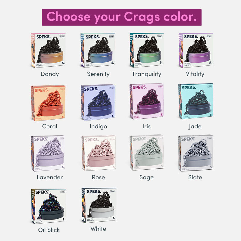 | Choose your Crags color | Coral, Dandy, Harmony, Indigo, Iris, Jade, Lavender, Oil Slick, Rose, Sage, Serenity, Slate, Tranquility, Vitality |