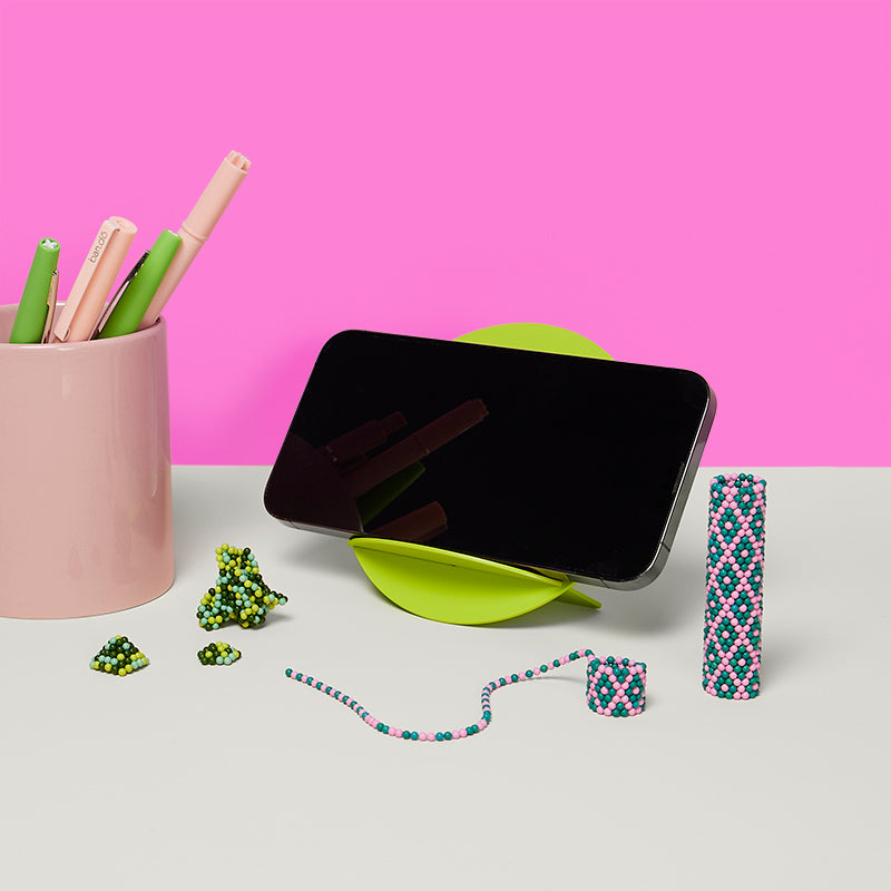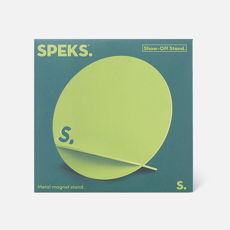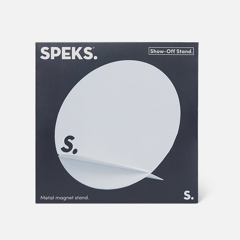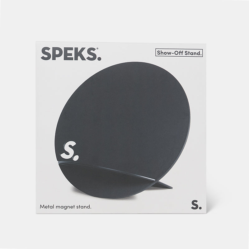 Take a stand. Show off Speks in style with our exclusive metal stand. Designed to perfectly pair with Speks, Fleks and Geode, this compact stand is the perfect fit for any desk, shelf or anywhere a little fun is needed.
